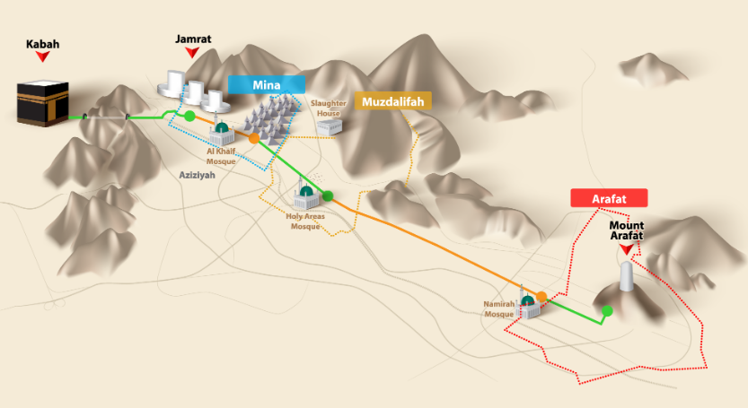Arafah is also called Al-Mash’ar Al-Haram, Al-Mash’ar Al-Aqsa and Ilal. The mount that is in the middle of Arafah is called Jabal Ar-Rahmah (Mount of Mercy).